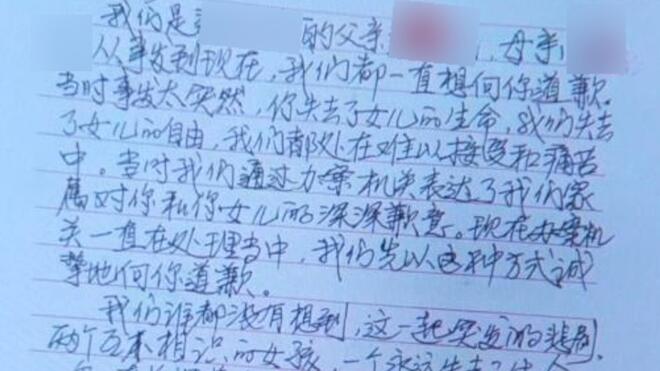 凶手父母发来一封致歉信 内容让受害者妈妈愤怒