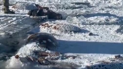 黑龙江一水库冰面下 惊现13匹“冰冻马”!