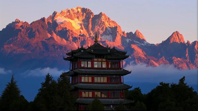 云南丽江玉龙雪山进入“日照金山”最佳观赏期