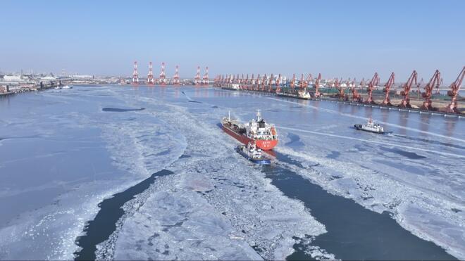 辽东湾超四成海面被浮冰覆盖 联防机制破冰助航