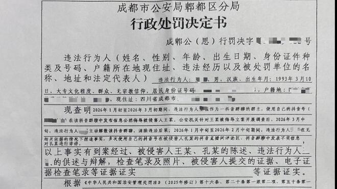 成都家门口受害者及家属遭建群网暴 群主被拘9日