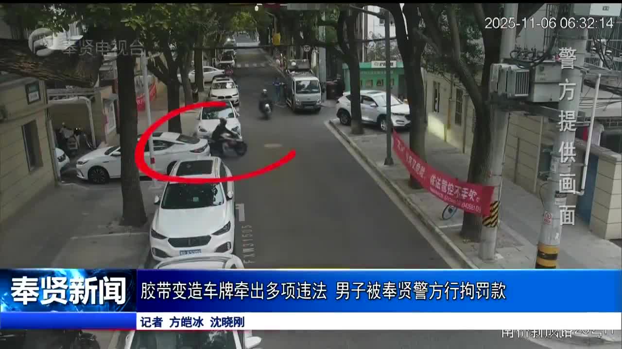 胶带变造车牌牵出多项违法 男子被奉贤警方行拘罚款