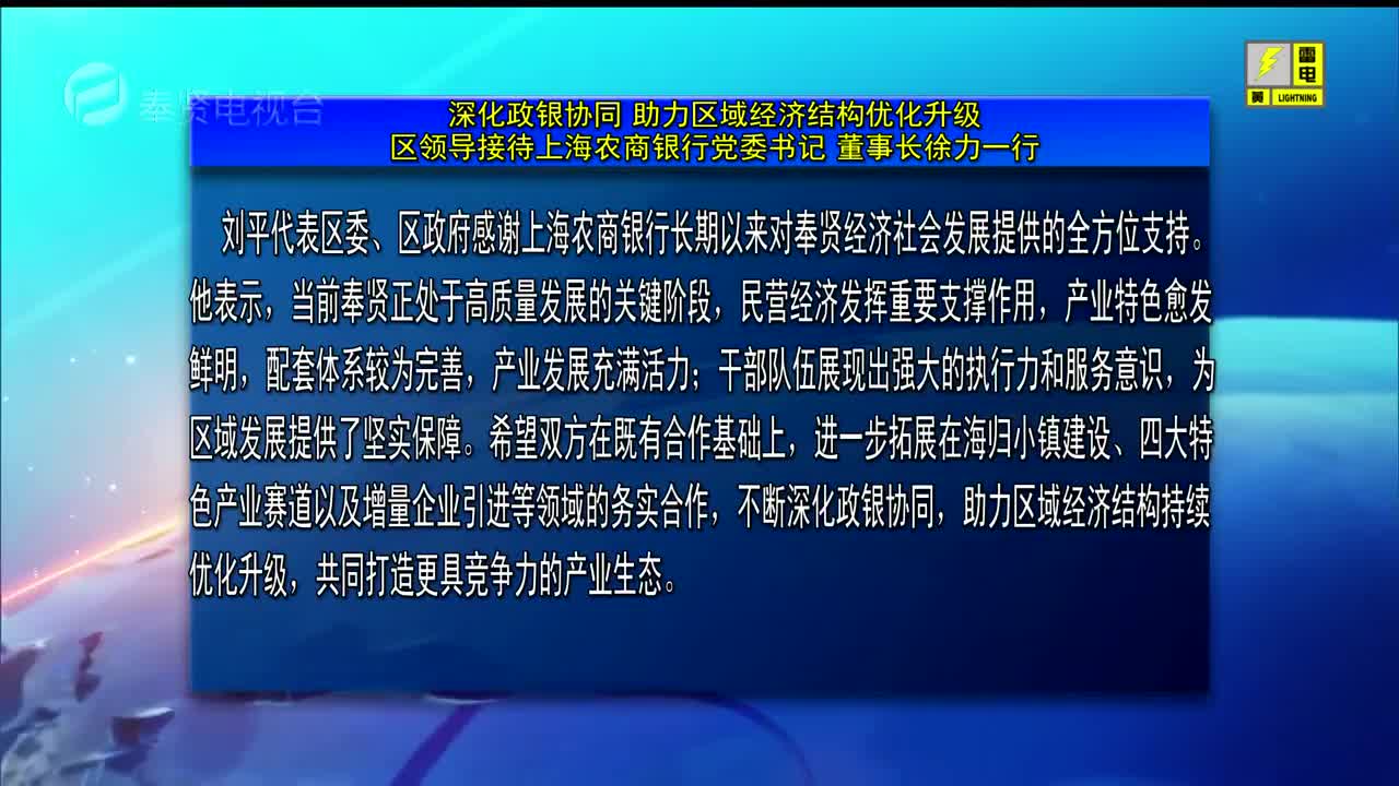 深化政银协同 助力区域经济结构优化升级 区领导接待上海农商银行党委书记 董事长徐力一行