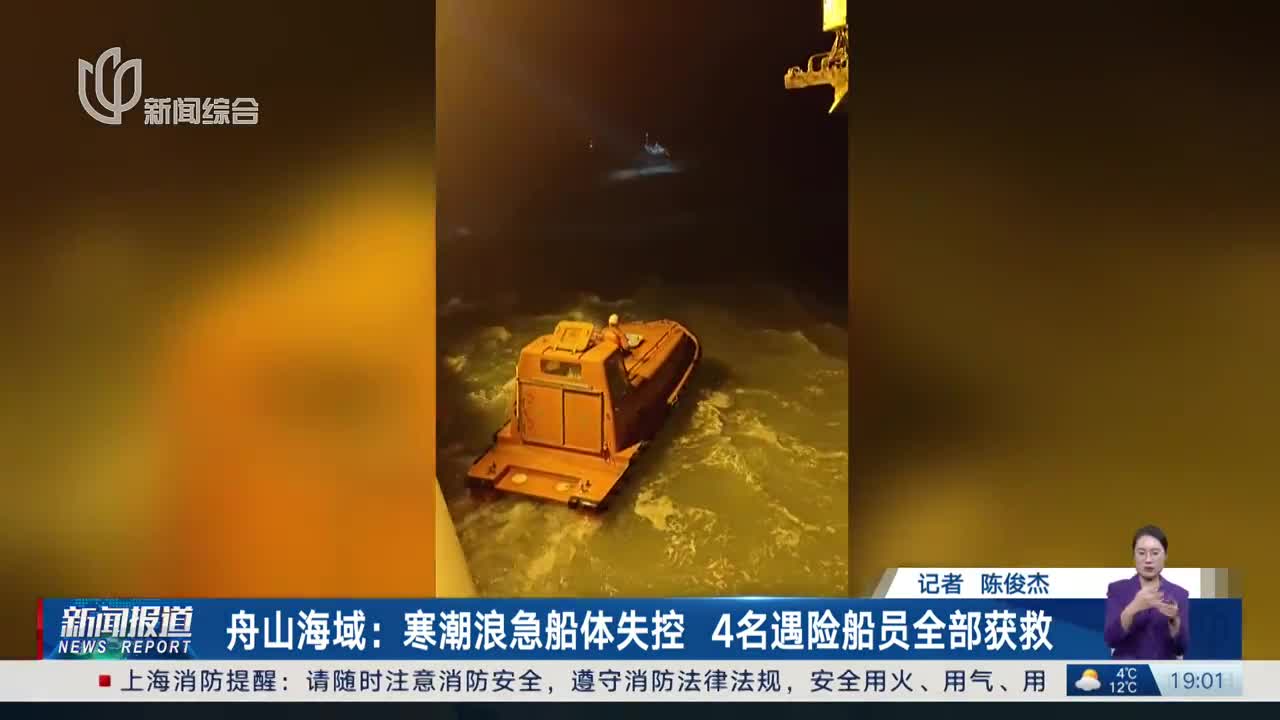 舟山海域:寒潮浪急船体失控 4名遇险船员全部获救