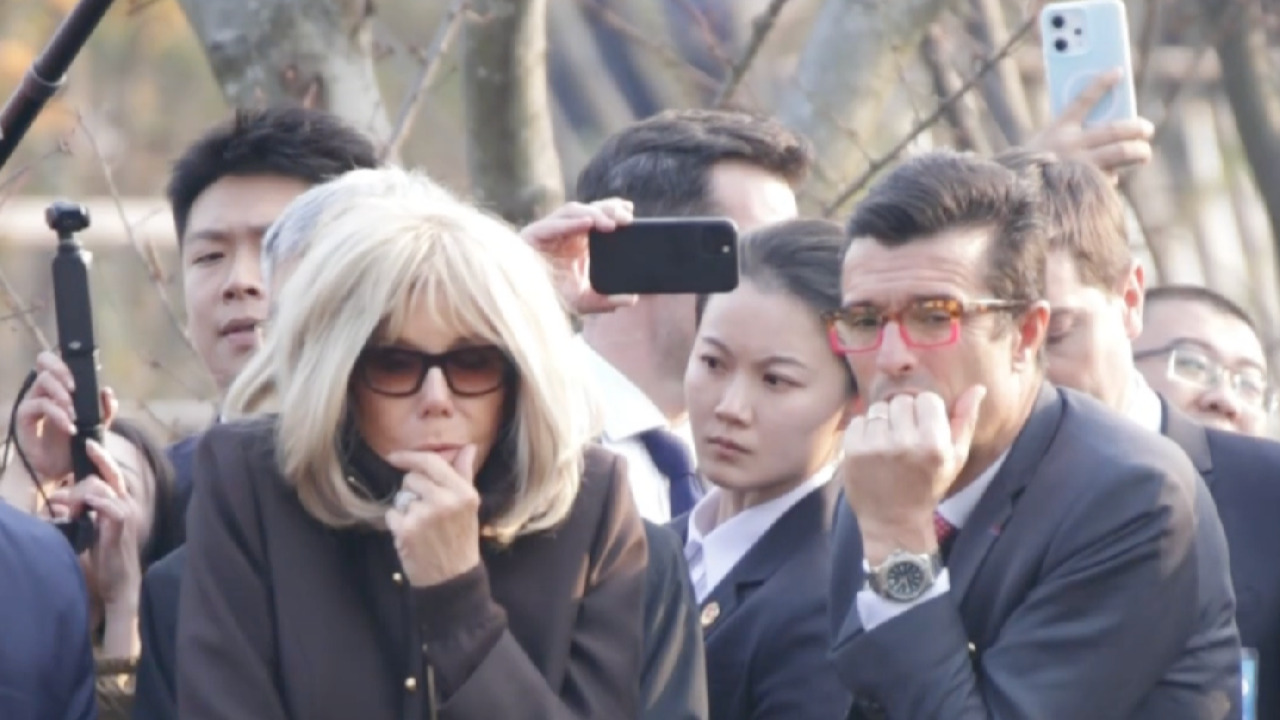 马克龙夫妇到访成都时 身后的女保镖火了!