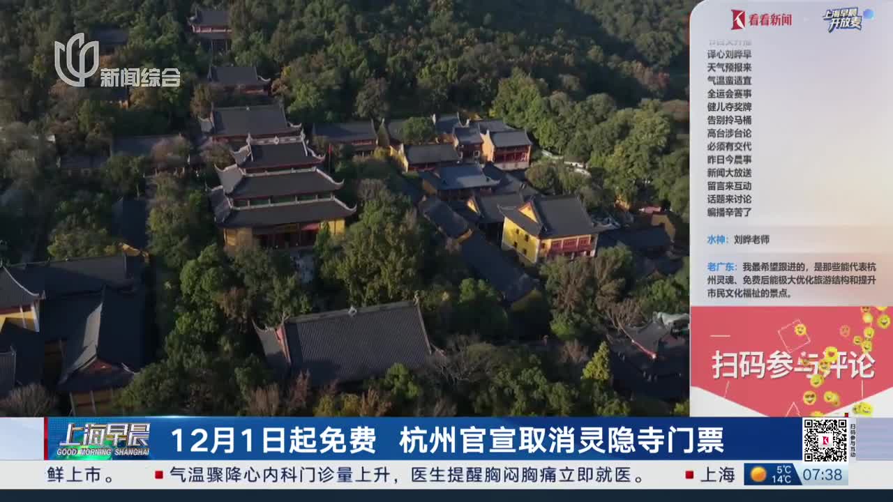 12月1日起免费 杭州官宣取消灵隐寺门票