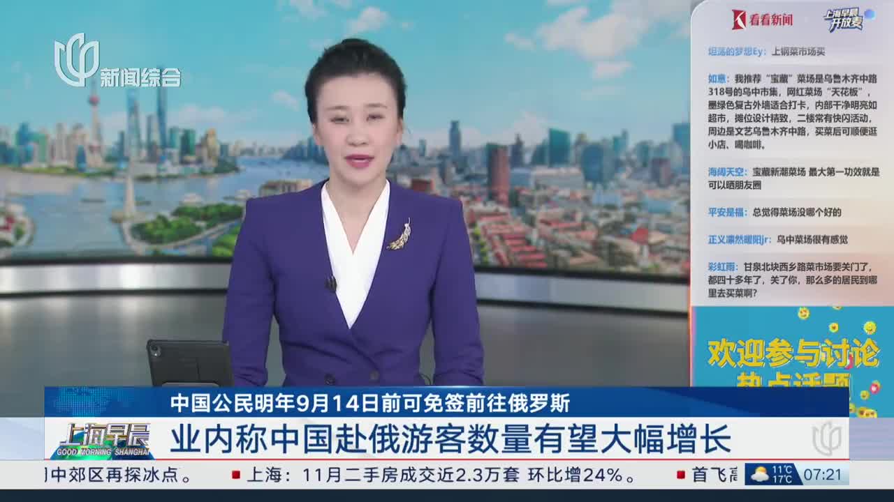 中国公民明年9月14日前可免签前往俄罗斯 业内称中国赴俄游客数量有望大幅增长