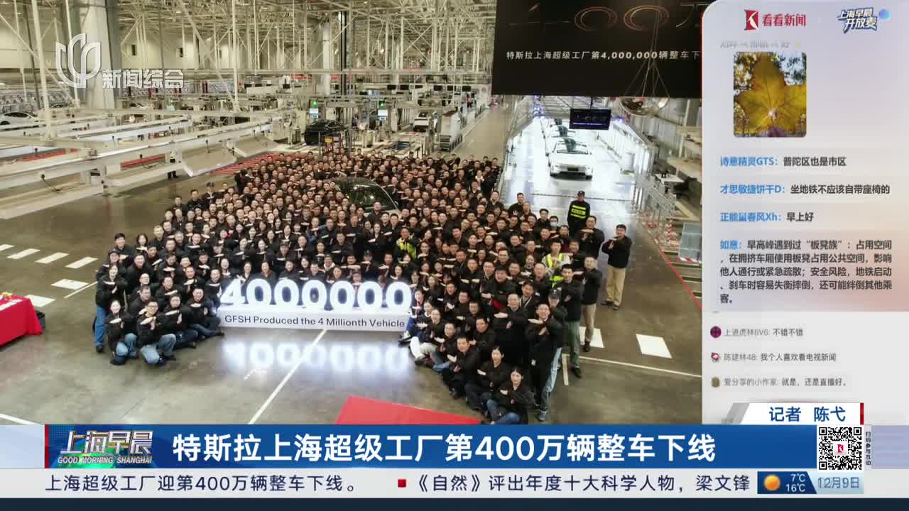 01:28 特斯拉上海超级工厂第400万辆整车下线 30多秒下线一台车 产业链本土化率已达95%