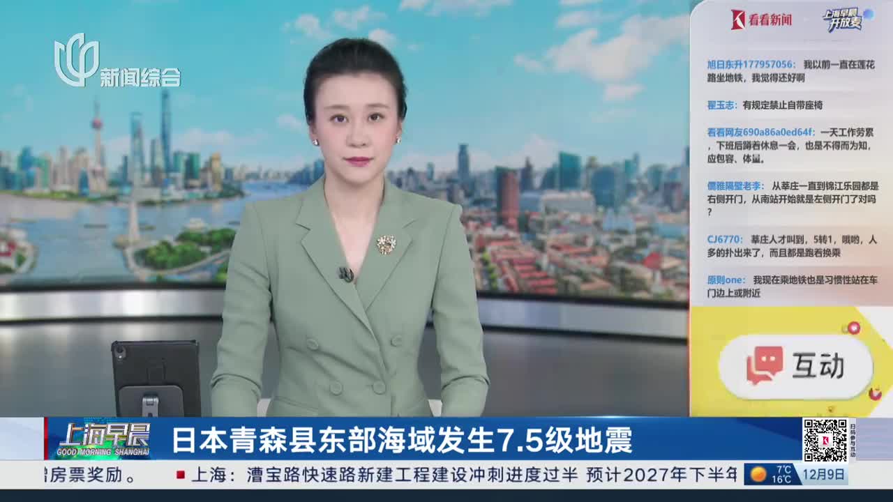 01:57 日本青森县东部海域发生7.5级地震 多人在地震中受伤 新干线部分线路暂停运行