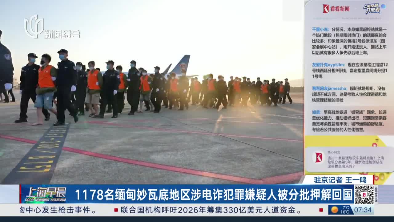 01:00 1178名缅甸妙瓦底地区涉电诈犯罪嫌疑人被分批押解回国