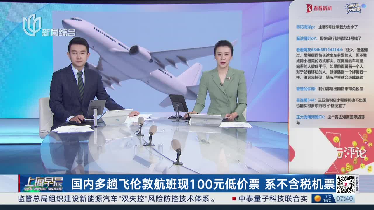 01:11 国内多趟飞伦敦航班现100元低价票 系不含税机票