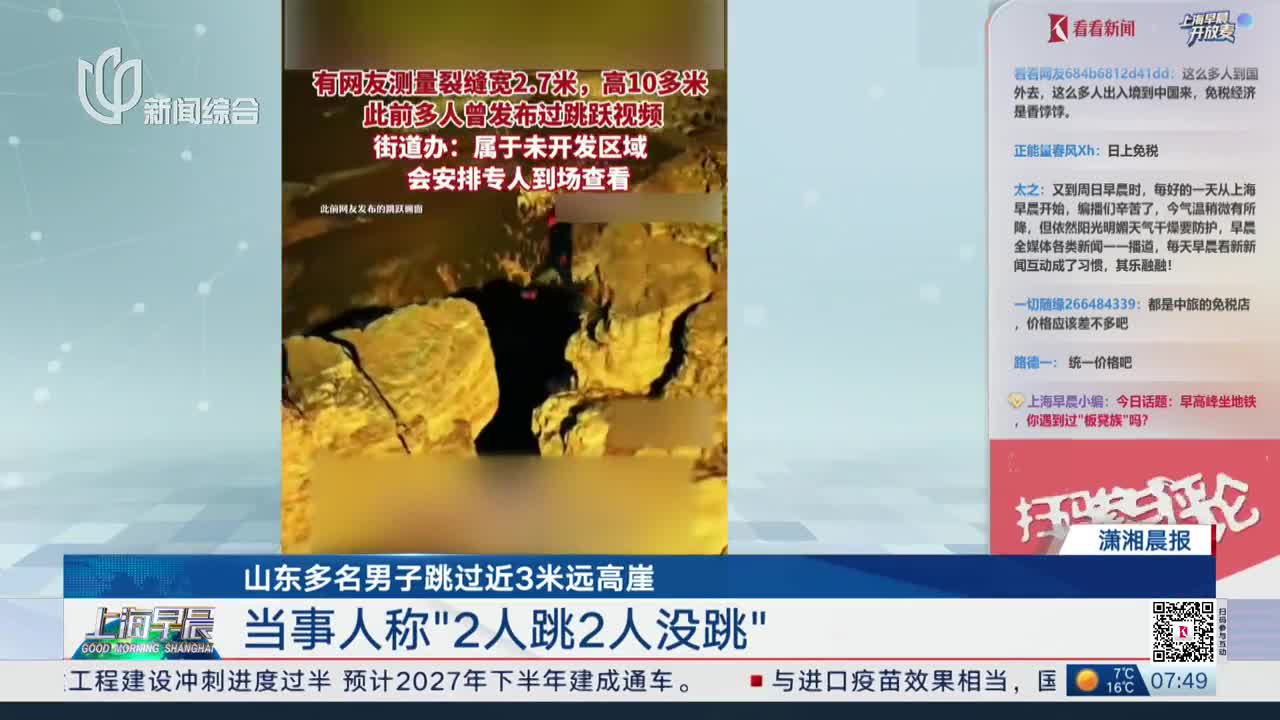 00:54 山东多名男子跳过近3米远高崖 当事人称“2人跳2人没跳”
