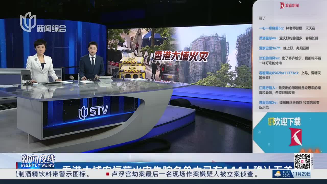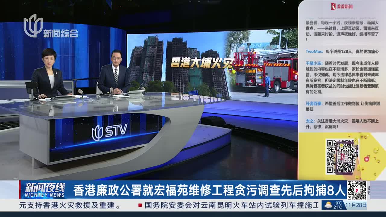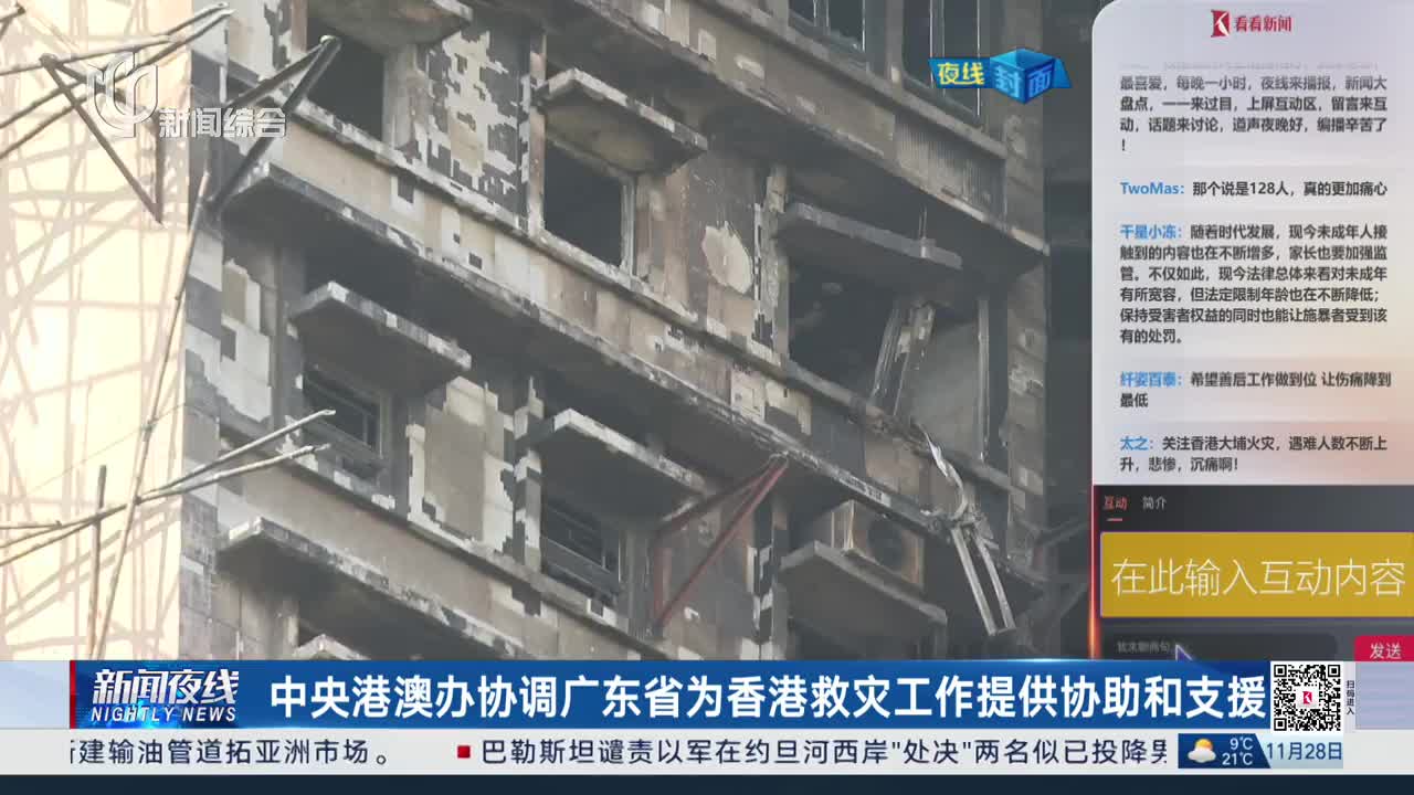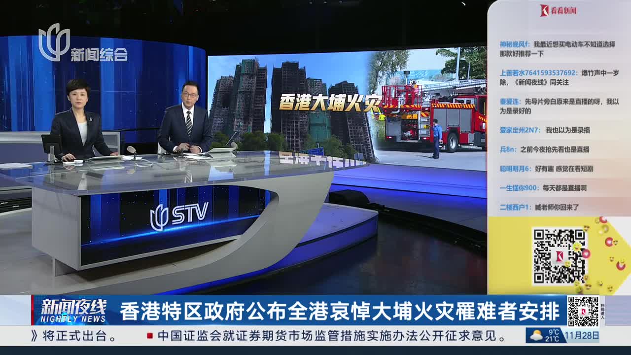 00:54 习近平向香港新界大埔区住宅楼重大火灾事故遇难人员和殉职消防员表示哀悼 对遇难者家属和受灾人员表示慰问 要求全力以赴扑灭火灾 努力把火灾伤亡损失降到最低