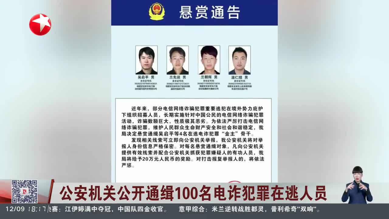 00:46 公安机关公开通缉100名电诈犯罪在逃人员