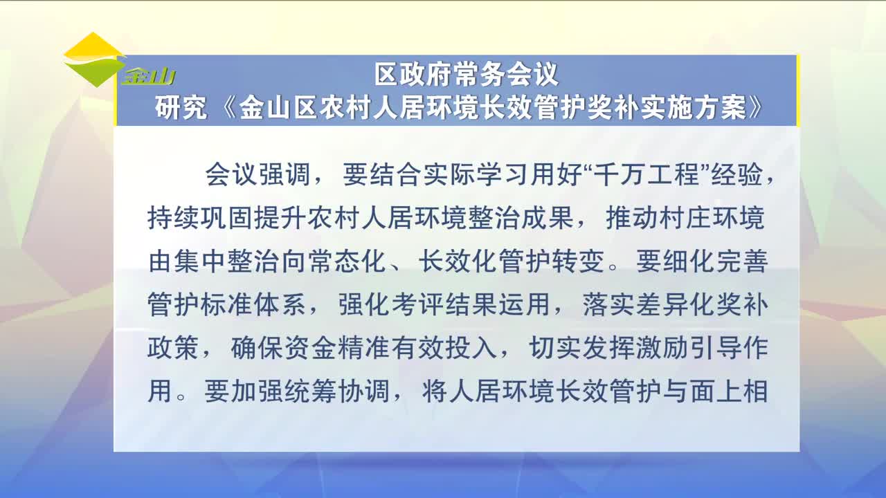 区政府常务会议 研究《金山区农村人居环境长效管护奖补实施方案》