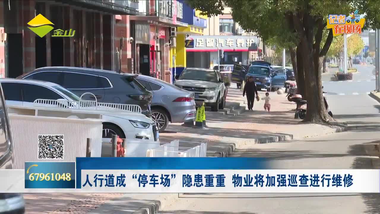 人行道成“停车场”隐患重重 物业将加强巡查进行维修