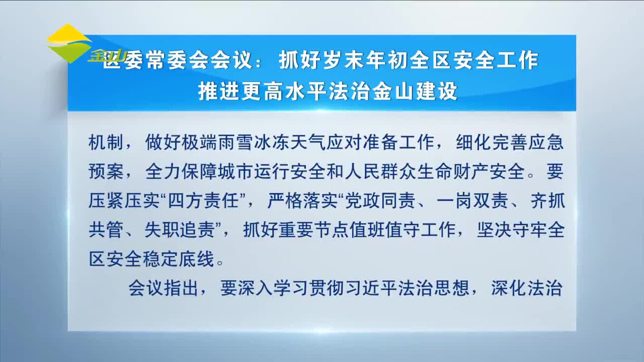 区委常委会会议:抓好岁末年初全区安全工作 推进更高水平法治金山建设