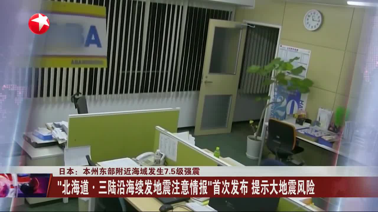 日本:本州东部附近海域发生7.5级强震