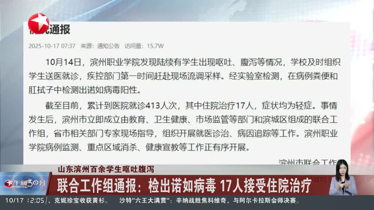 山东滨州百余学生呕吐腹泻 联合工作组通报:检出诺如病毒 17人接受住院治疗