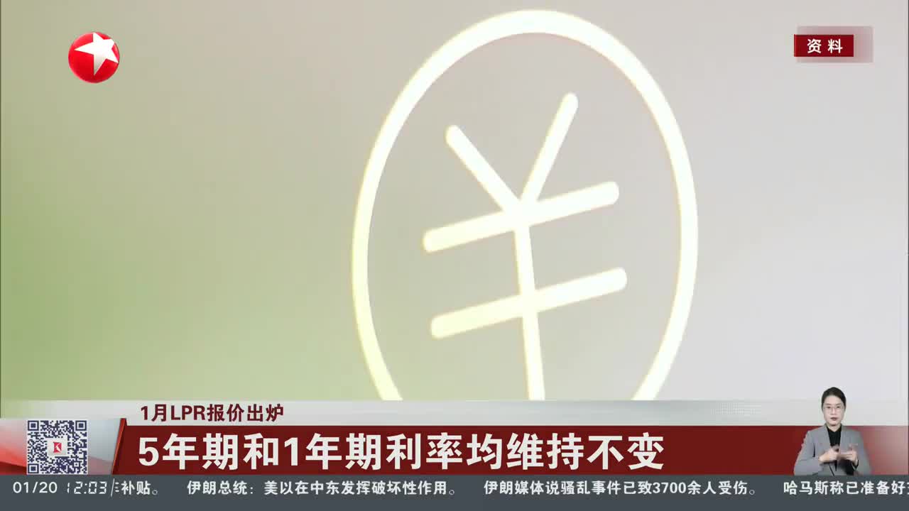 1月LPR报价出炉 5年期和1年期利率均维持不变