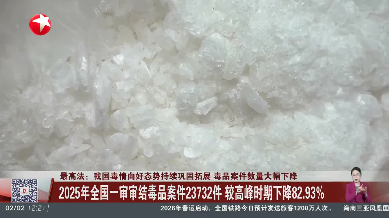 最高法:我国毒情向好态势持续巩固拓展 毒品案件数量大幅下降 2025年全国一审审结毒品案件23732件 较高峰时期下降82.93%