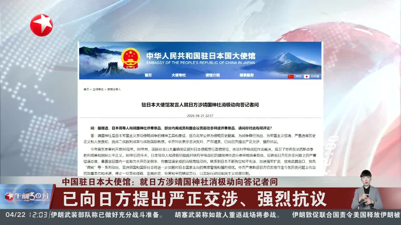 中国驻日本大使馆:就日方涉靖国神社消极动向答记者问 已向日方提出严正交涉、强烈抗议