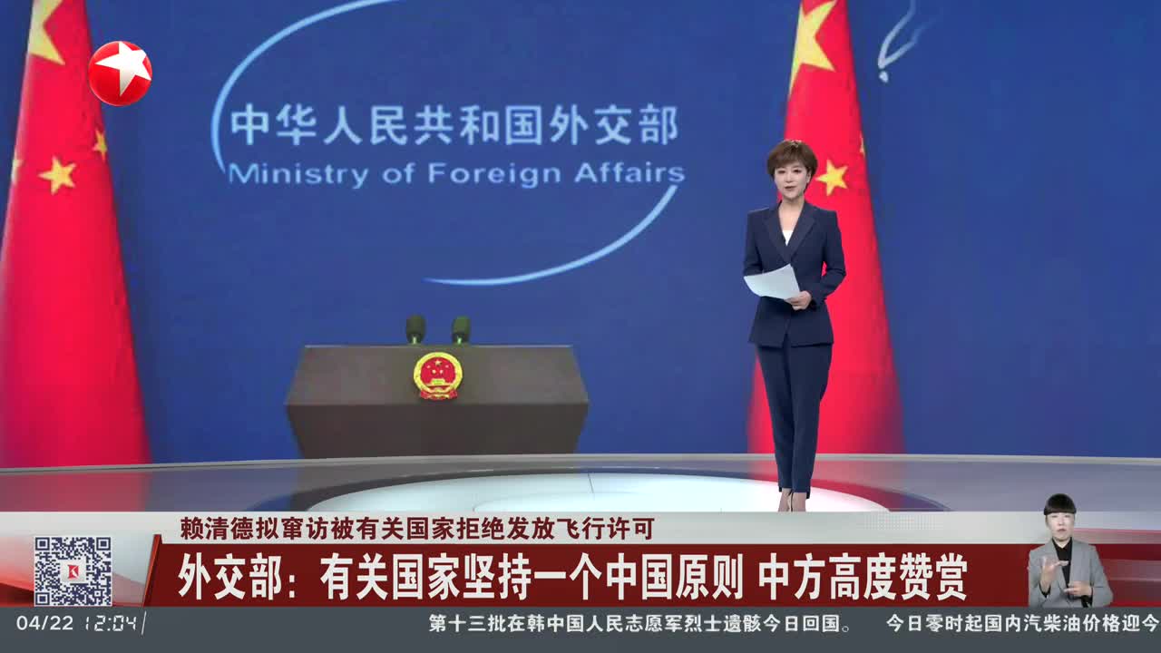 赖清德拟窜访被有关国家拒绝发放飞行许可 外交部:有关国家坚持一个中国原则 中方高度赞赏