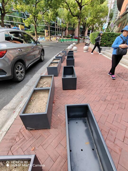 近日,周边市民发现人民路南侧潘家街西侧人行道市政绿化带内(图片1)有挖掘机正在进行绿化改造施工,但现场仅在隔离木板上张贴含有“绿化改造中”的白底黑字纸张(图片2),具体施工行为有铲除低矮草丛植被,下挖泥土,平整场地(图片3),缺少规范化的施工铭牌。我的诉求如下:①在现场施工行人通过明显位置摆放施工铭牌; ②公示项目名称;③公示批准机关名称;④公示建设单位名称;⑤公示设计单位名称;⑥公示现场施工开始与结束的具体日期。