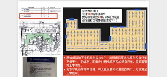 我是青浦区蟠文路638弄蟠龙华庭(同济蟠龙里)小区业主,小区有严重的未按规划施工的情况。 小区原始规划103个地下非机动车停车位,实际勘测完全达不到103辆停靠所需要的面积,并且非机动车停车区域有大量设备间的出入门,无法正常使用。 要求开发商严格按照要求提供103个符合标准的非机动车停车位和满足要求数量的充电插口。
