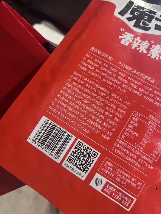 昨天通过超市购买了一包卫龙牌的魔芋爽,红色包装,今天打开后发现里面是黑色脏污,还有一条类似于蜈蚣的尸体趴在包装里,虽然是独立小包装,但也实在过于恶心,从包装的情况来看,很难想象工厂的环境和食品卫生质量是多么的不堪