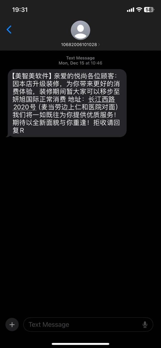 我在三泉路悦尚购买充值剪发卡。去年12月悦尚通知装修推荐至外长江西路研旭使用,实际悦尚闭店。至今剩15次500元,后了解悦尚与研旭不同老板财务独立不互认对方充值金额,妍旭从悦尚获取客户提供体验引流,春节后客户需重充值接受新价格才能继续使用原有充值,研旭提供服务已降低原悦尚标准。因家人共同使用新址距本人2.5公里外,家人70多行动不便。向12345求助市监局退费,遭无联系直接关单,望媒体帮助。