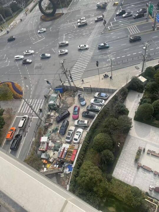 投诉事项:周家嘴路新建路路口规划绿化带违规堆放易燃物,收费停车,存在消防与人身安全隐患 该路口为北外滩重要景观带,周边绿化完善,此处却长期未恢复绿化,还擅自堆放建筑物料及易燃物。现场私设门锁,违规改作收费停车场,停放十余辆汽车,车辆跨越人行道进入场地,严重危及行人安全。场地紧邻小区,易燃物与车辆混杂,冬季天干物燥易起火。大门私锁,起火后无法及时救援,存重大消防隐患。恳请媒体监督、相关部门核查处置。