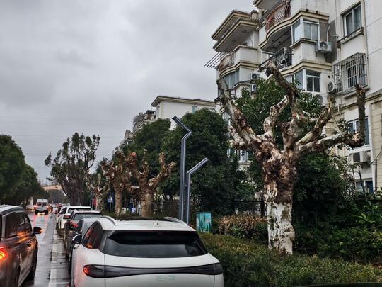 反应一刀切毁绿问题: 浦东新区华高苑小区周边道路的树木每过两年就被过度修剪,投诉市民热线,相关单位反馈说是适度修剪,但从实际照片看直接违反了《上海市行道树养护技术规程》(DG/TJ08-2105-2012)第5.1.1条“严禁截干抹头”的明确规定。 周边小区居民对破坏性地修剪很气愤,希望能增加曝光度引起相关绿化监管和问责!