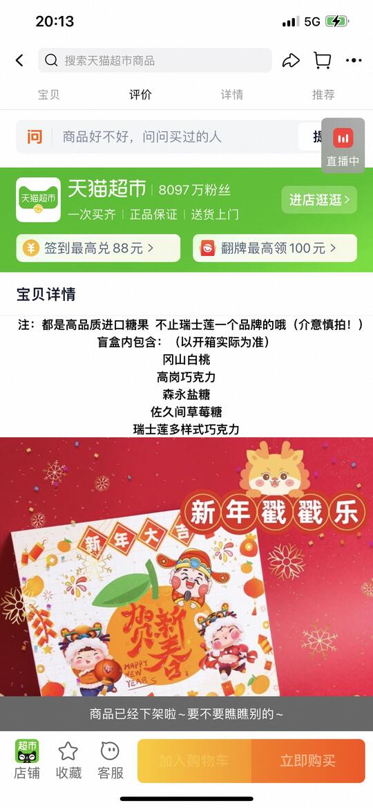快过年了,想给小朋友送个礼物开心开心,结果发生了很尴尬的事儿。前两天在天猫超市买了2盒瑞士莲巧克力的新年礼盒寄给小朋友,结果人家收到后打开发现都是杂七杂八的糖果,压根就不是什么巧克力,还没有生产日期,说是大兴的不得了。很震惊,马上联系客服,答复是宝贝详情页有描述,“里面不止是瑞士莲巧克力一种”,意思是怪我自己没看仔细。确实我没有看到那么小的字的备注。因为标题明明写的是瑞士莲巧克力新年礼盒,哪里知道详情页还有这样挂狗头卖羊肉的描述,这是明着欺骗,想着天猫超市的商品应该是比普通的淘宝店铺要正宗,所以就看着标题和图片挺好就买了,哪里知道还有这样的标题党骗局,并且还不支持退货