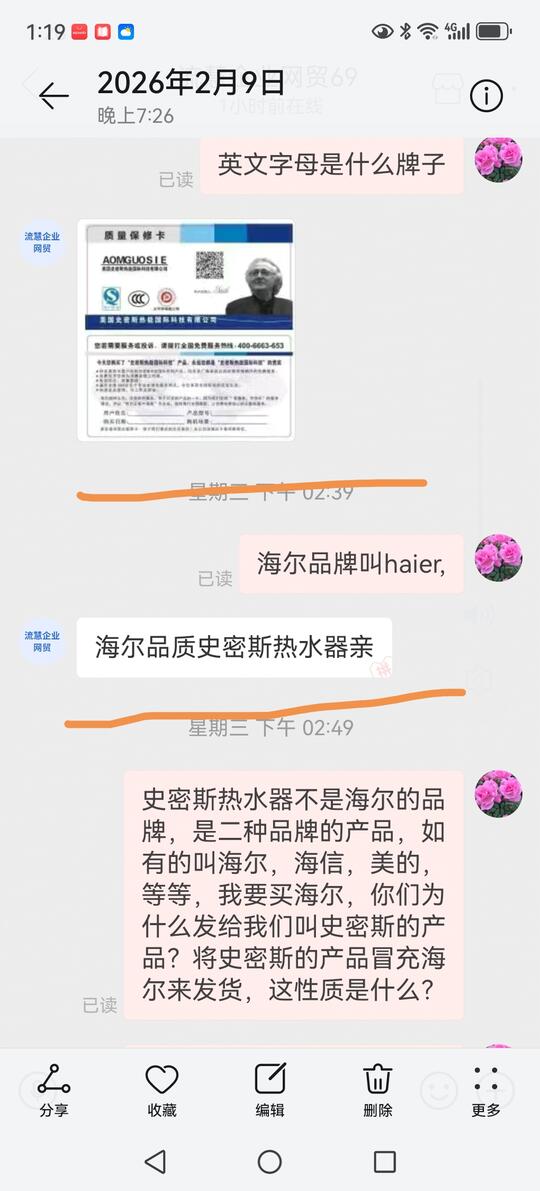 1、家里老人通过拼多多平台购买热水器,商家用“海尔”作为商品标题诱导老人购买(见图2),且里面介绍示意图机身上隐去了品牌logo,持续误导消费者!收到货第一次使用就各种漏水,联系客服后遭到售后维修的需求,甚至让消费者自己修(见图1、2),这违背了售后服务(见图3)!后来发现机身上品牌根本不是海尔后(见图5),商家客服发了所谓品牌资质证书,查了下根本没有这类品牌(见图6,7),商家利用令人混淆的标题和虚假产品介绍来欺骗消费者!2、联系拼多多平台,平台只粗暴简单用“退货退款”来处理问题,商家既不负责上门拆机还不承担退运费,平台放任商家欺骗消费者卖假货,投诉后也得不到平台人工客服的电话联系解决问题!