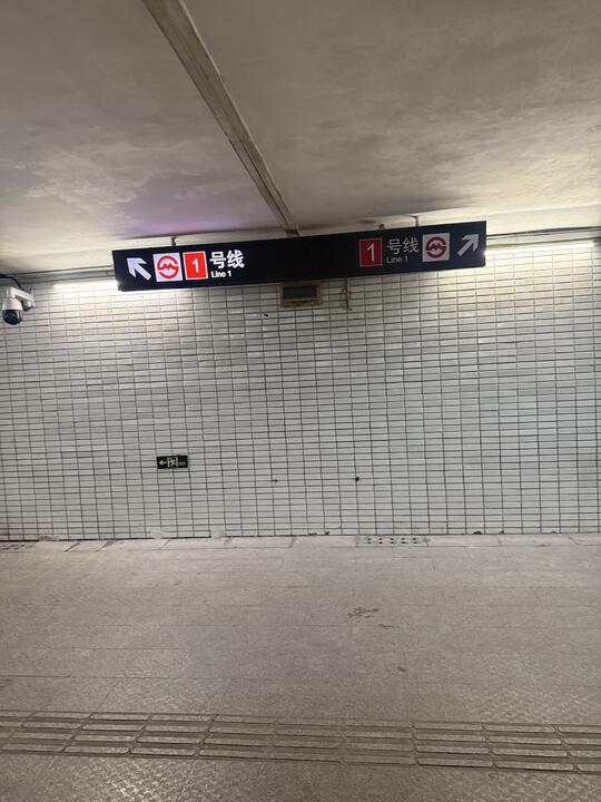 沪闵路行人过街地道地铁指示牌有有个灯不亮