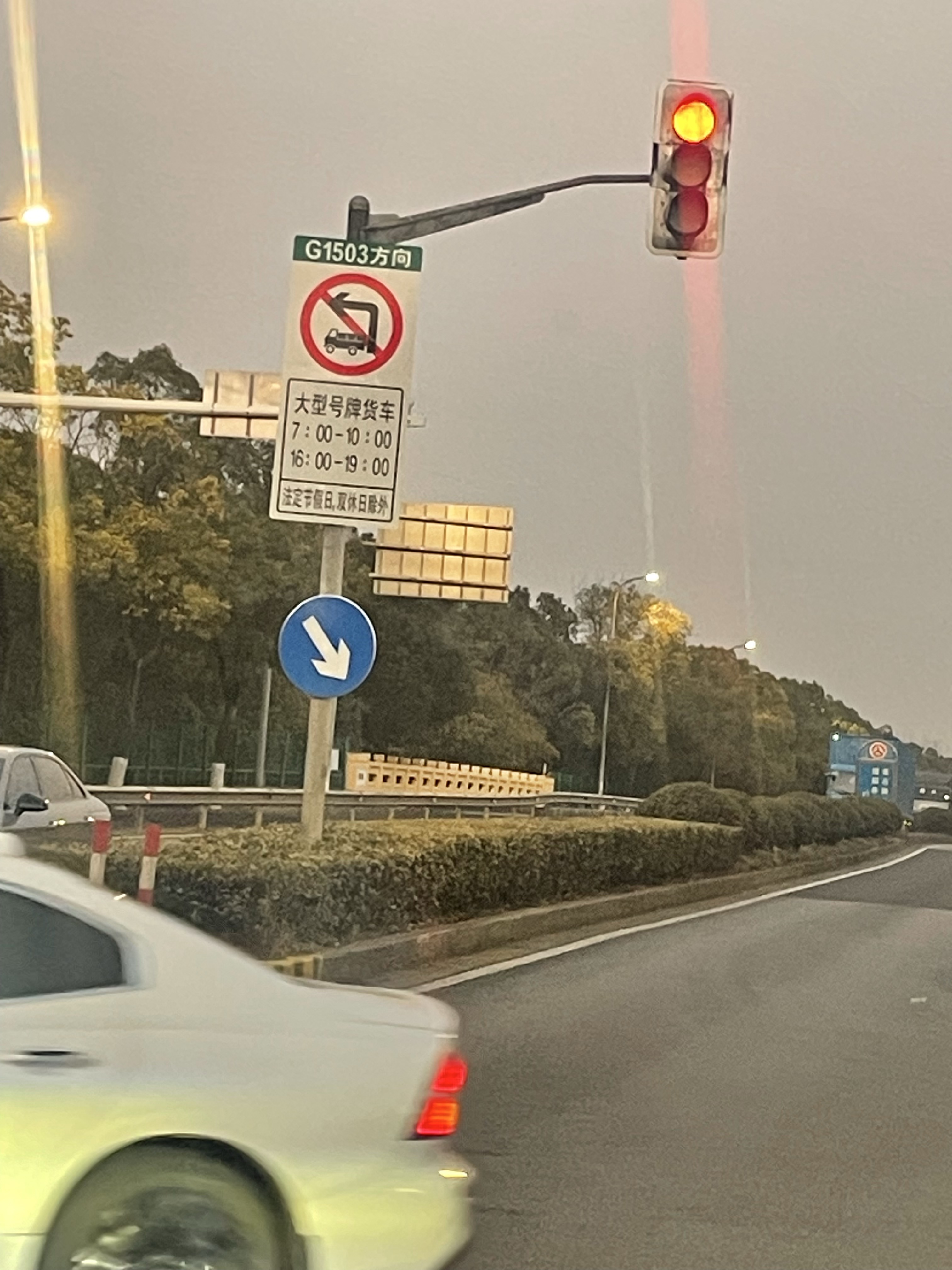 嘉定区嘉安公路左转上G1503高速口,以前下班经常一堵就是半小时,全是带挂大卡车,但是从2025年12月开始就悬挂了黄牌货车早晚高峰禁止左转上高速的禁令标志了,可是路口的情况和之前一样,没有一个大货司机遵守的,主播能不能帮忙关注一下,其间110也打过,12345也打过,嘉定公安交警的回复就是禁令标志牌设立不久,以后会加强管理。