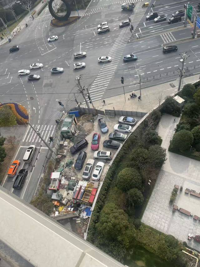 该路口为北外滩重要景观带,周边绿化完善,此处却长期未恢复绿化,还擅自堆放建筑物料及易燃物。现场私设门锁,违规改作收费停车场,停放十余辆汽车,车辆跨越人行道进入场地,严重危及行人安全。场地紧邻小区,易燃物与车辆混杂,冬季天干物燥易起火。大门私锁,起火后无法及时救援,存重大消防隐患。恳请媒体监督、相关部门核查处置。