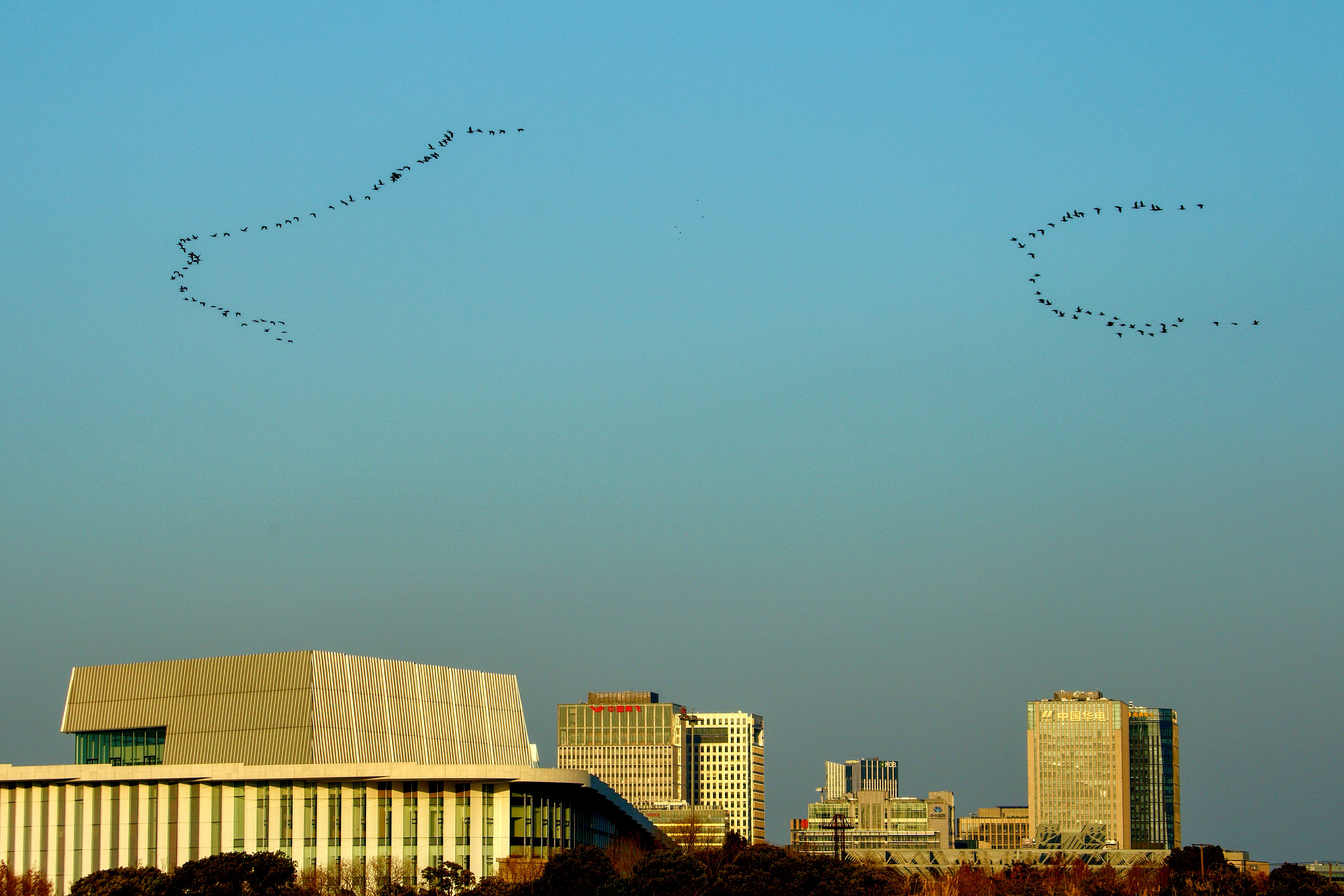 不知是什么鸟飞过陆家嘴上空