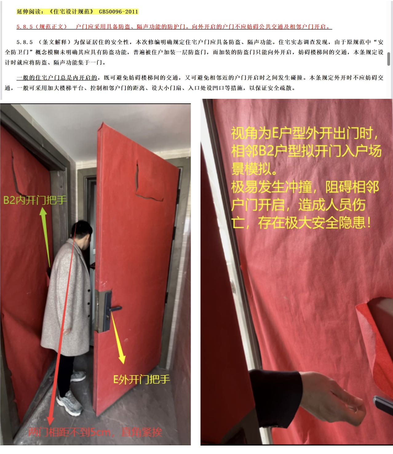 我们是康安路586弄(项目名称: 颐盛云锦苑) B2户型业主,小区临近交付,开发商施工失误,直角入户门做成外开、消防安全隐患触目惊心,开发商承认错误但有内部利益关系人,拒不整改。大量行政投诉遭程序性推诿,业主合法权益和生命安全等不到保障。