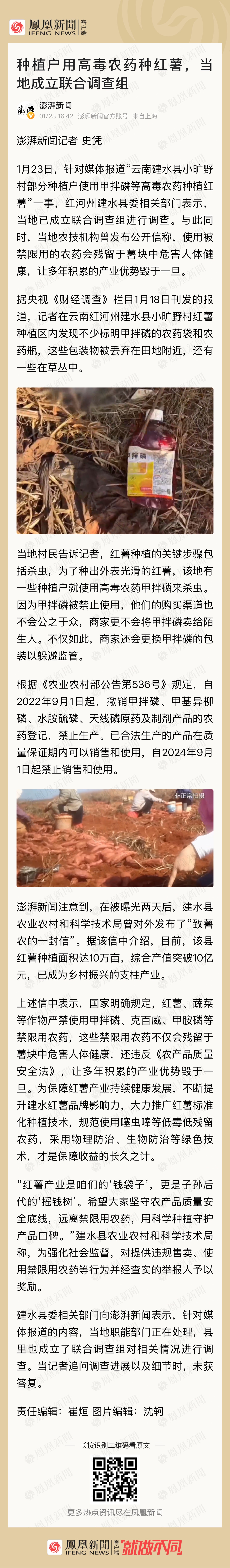 Costco售卖的一款红薯我多次回购食用过,粗粗算一下至少买过7-8盒了,最近看到新闻说,云南红河州建水县种植红薯农户大量违规使用违禁有毒农药种植红薯,查看自己食用的这款Costco购买的红薯产地正是云南红河州建水县的,要命了之前食用了那么多红薯都是在变相吃毒品损害身体.况且Costco还在售卖。