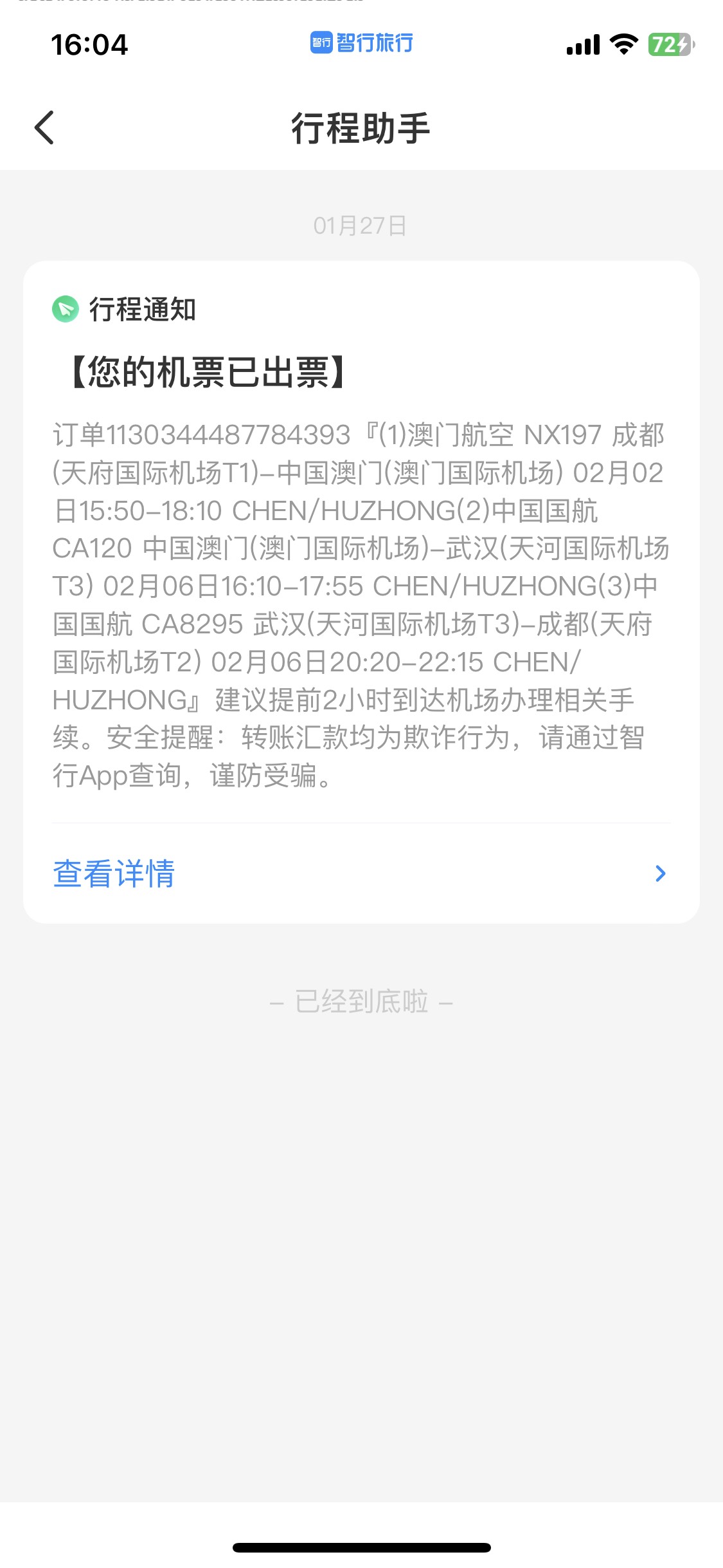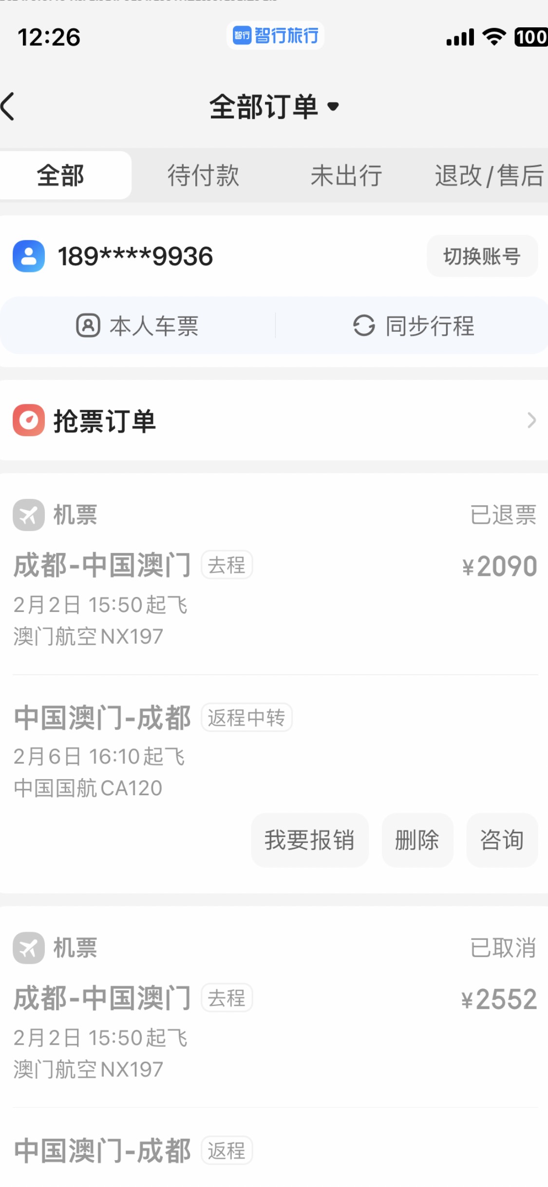 我今年1月27日在智行旅行平台购买该平台成了都到澳门来回机票,购买后发现回成都的机须经武汉市停几小时,因为本人年龄比较大70左右健康又有问题得了淋巴癌就是要出去看看了确一生。接果因回来机票须中转就怕身体健康出问题所以立即退票。因为买票时看见智行平台写的退扣500元改扣300元所以就退了想从买,接果他们平把消费者吭害的要命。机票总价2090元退了我661元扣了我1400多元。我理伦他们就说是上面的规定。我一个老年病人怎么斗的过他们。只能靠政府部门帮帮我来解决问题。我也去了解了澳门航空公司有关退改签规定截了图。他们真的乱来吭害消费者。请你们一定帮帮我谢谢!本人:陈虎忠电话:1898