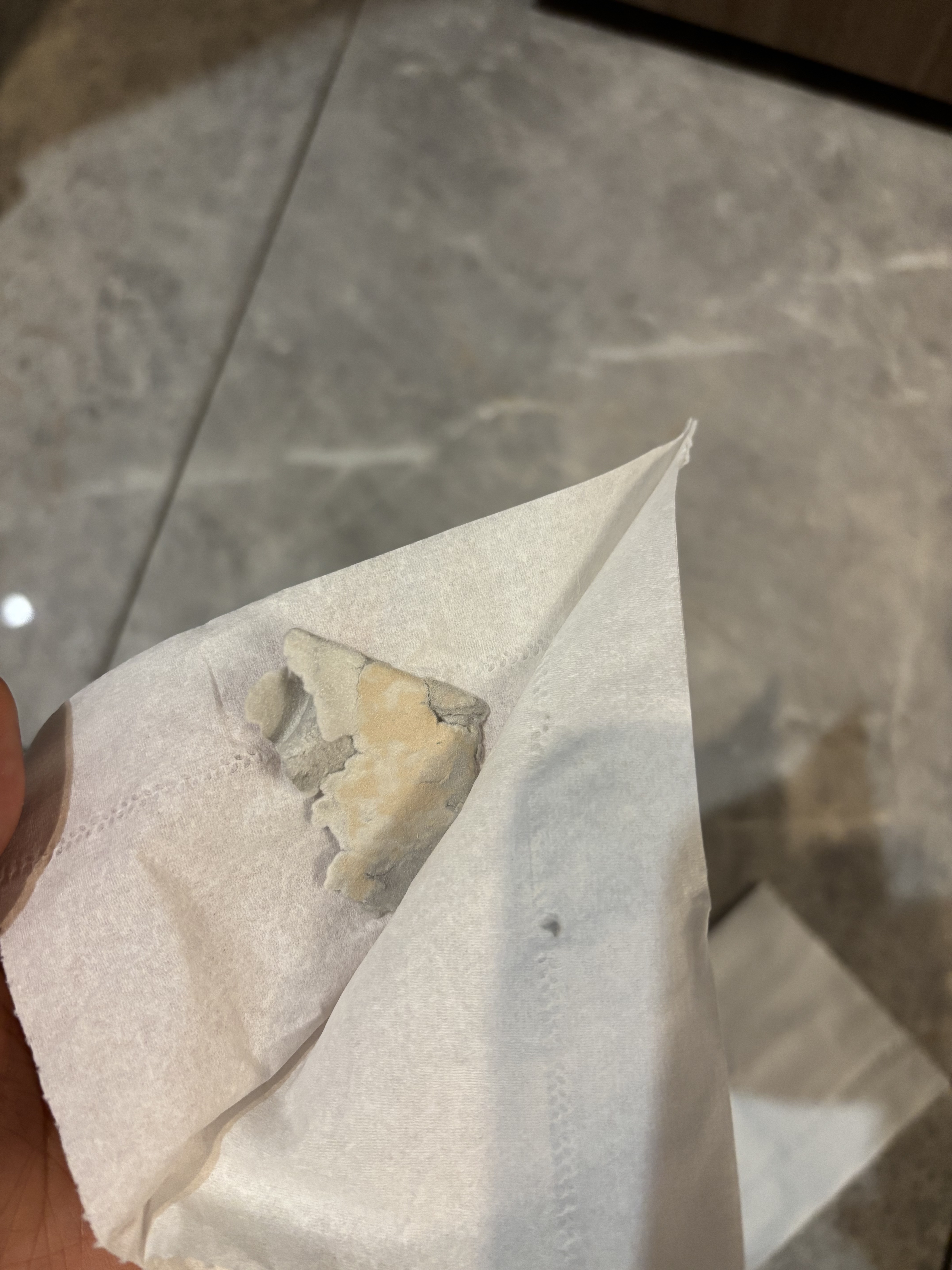 在天猫超市购买了清风的卫生纸,发现里面有灰黑色的一大块异物,旁边还有一格4层纸(几层纸间没打开)里夹着黑灰色的异物