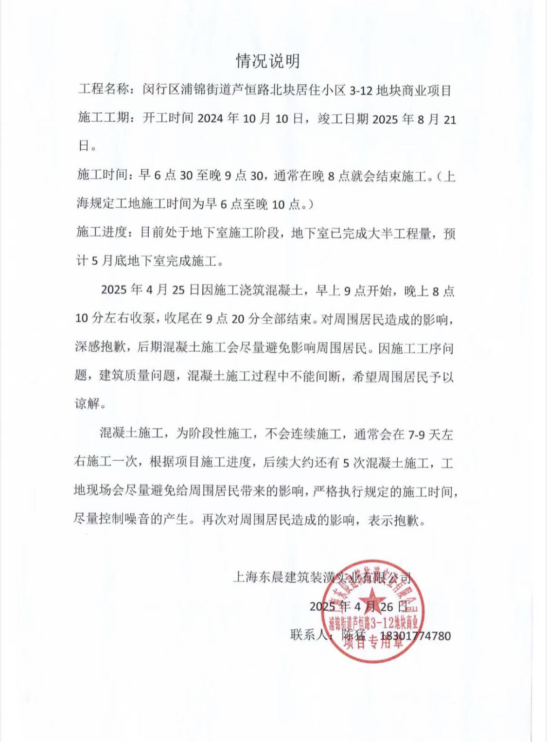 闵行区浦恒馨苑2159弄8号楼后面的工地,从早上6点一直到晚上九点施工噪音严重超标,我们楼紧挨着工地,不堪其扰。工地紧挨着居民楼为什么相关部门会发放夜间施工资质,允许他们长时间施工。