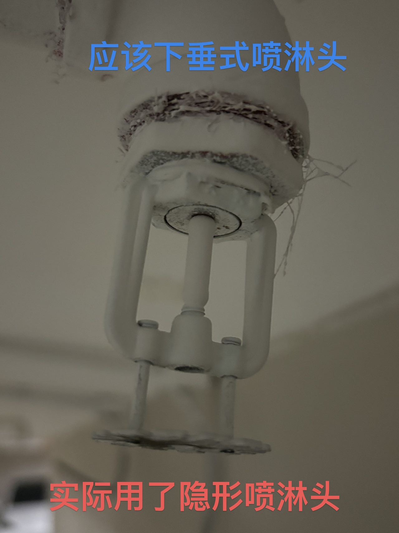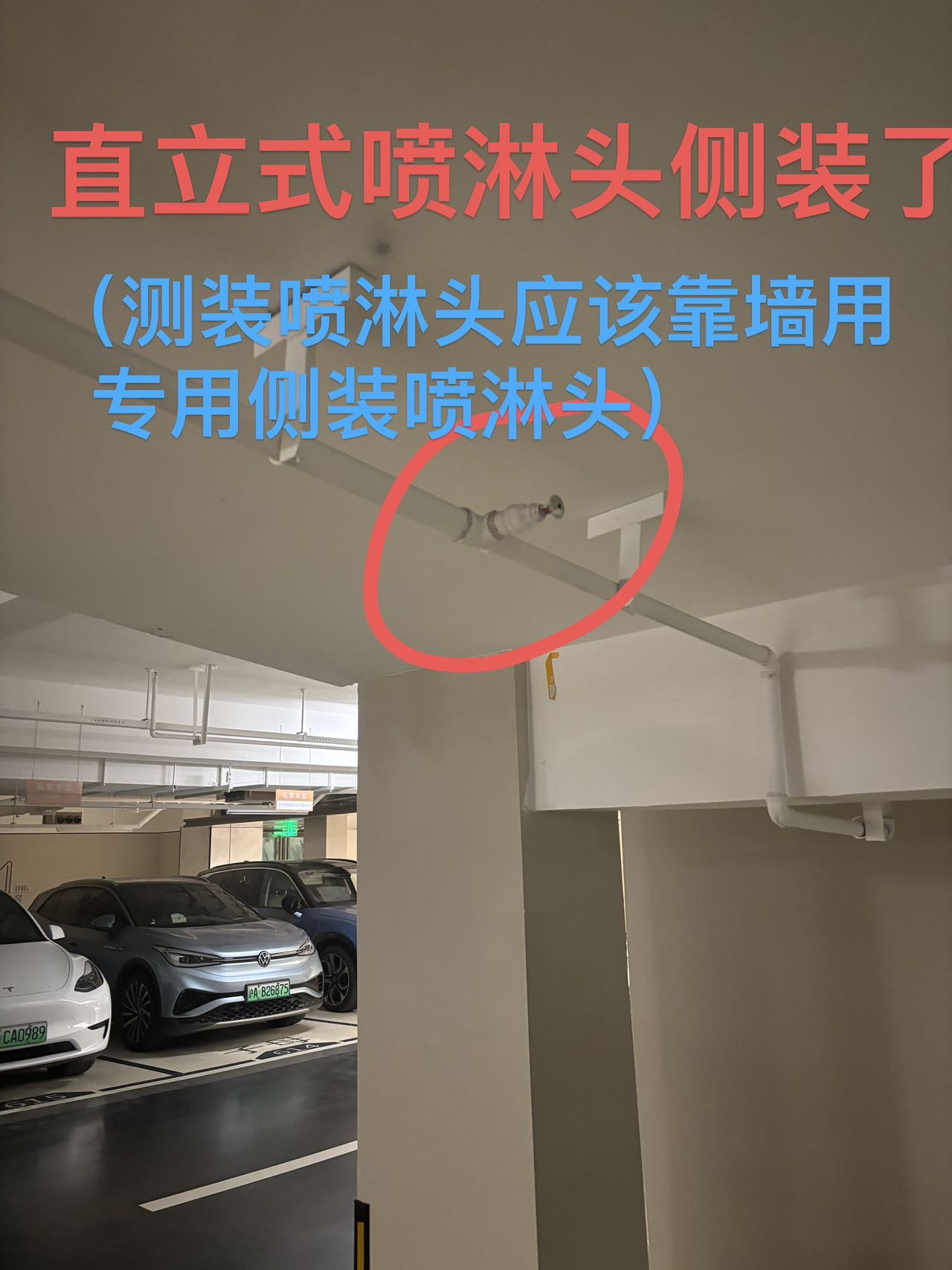 地下车库洒水喷头安装错误